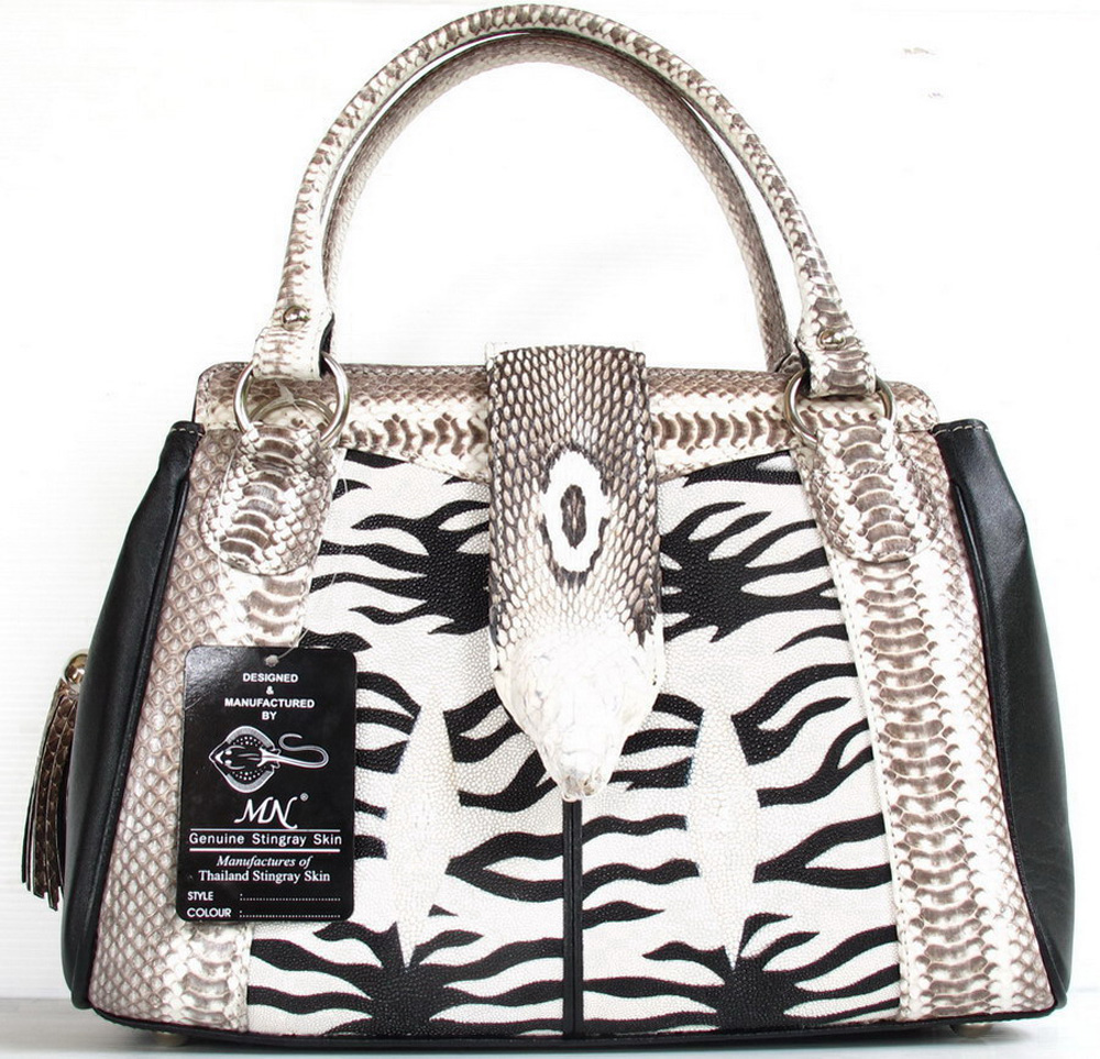 - กระเป๋าถือหนังปลากระเบน+หนังงู